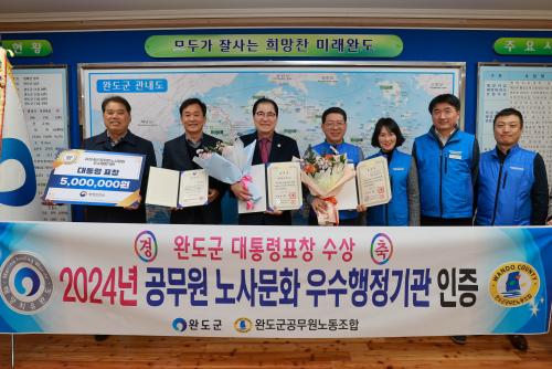 ÇÑÆí ¿Ïµµ±º°ø¹«¿ø³ëµ¿Á¶ÇÕ ±è¿ÏÁÖ À§¿øÀåÀº °ÇÀü ³ë»ç °ü°è ±¸Ãà¿¡ ´ëÇÑ °ø·Î¸¦ ÀÎÁ¤¹Þ¾Æ ´ëÅë·É ǥâÀ» ¹Þ´Â ¿µ¿¹¸¦ ¾ò¾ú´Ù.