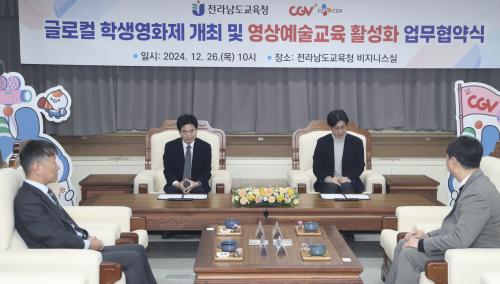 CJ CGV Á¶ÁøÈ£ ±¹³»»ç¾÷º»ºÎÀåÀº ¡°K-¹«ºñ°¡ Àü ¼¼°èÀÇ ÁÖ¸ñÀ» ¹Þ°íÀÖ´Â ½ÃÁ¡¿¡¼, ¿µÈ¶ó´Â ¸Å°³Ã¼¸¦ ÅëÇØ ²ÞÀ» Ű¿ì°í ¡®È¥ÀÚ°¡ ¾Æ´Ñ °°ÀÌ ¼ºÀåÇϴ¡¯ ±³À°À» Ãß±¸ÇÏ´Â Àü³²±³À°Ã»ÀÇ ±³À°ºñÀü¿¡ µ¿°¨ÇÑ´Ù.¡±¸ç ¡°Àü³² ÀÛÀºÇб³ ÇлýµéÀÌ ¸¸µç ¿µÈ°¡ ´õ¿í ÁÖ¸ñ¹ÞÀ» ¼ö ÀÖµµ·Ï Áö¼ÓÀûÀ¸·Î Çù·ÂÇØ ³ª°¡ÀÚ.¡±°í ¸»Çß´Ù.