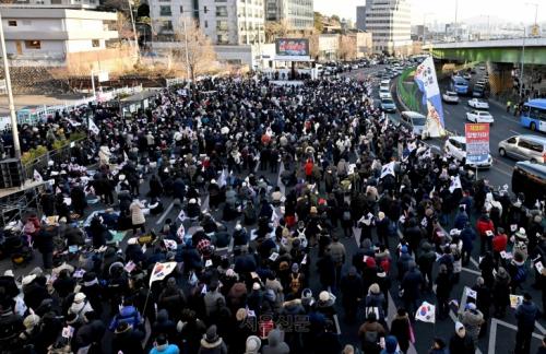 °üÀú ¾Õ Àεµ ÅëÇàÀ» Â÷´ÜÇÏ°í ´ëÀÀ¿¡ ³ª¼± °æÂûÀº ¸ð¿©µç ½ÃÀ§ÀÚµéÀ» ÇâÇØ ¡°µµ·Î¸¦ Á¡°ÅÇÒ °æ¿ì Áý½Ã¹ý(Áýȸ ¹× ½ÃÀ§¿¡ °üÇÑ ¹ý·ü)°ú µµ·Î±³Åë¹ý¿¡ µû¶ó ÇØ»ê ÀýÂ÷¸¦ ÁøÇàÇÑ´Ù¡±´Â °æ°í ¹æ¼ÛÀ» ÀÕ´Þ¾Æ ³»º¸³Â´Ù.
