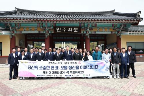 ±¸ ±º¼ö´Â 6¿ù 3ÀÏ ½Ç½ÃµÇ´Â Á¦21´ë ´ëÅë·É ¼±°Å¸¦ ¾ÕµÎ°í¡°Àû±ØÀûÀÎ ÅõÇ¥±Ç Çà»ç¾ß¸»·Î °ð ¿À¿ù ¹ÎÁÖ Á¤½ÅÀ» °è½ÂÇÏ´Â ÀÚ¼¼À̸ç, ´ëÇѹα¹ ¹ÎÁÖÁÖÀÇÀÇ ¹ßÀü°ú ¹Ì·¡¸¦ ¹Ù²Ù´Â Èû¡±À̶ó°í °øÁ÷ÀÚ¿Í ±º¹Î ¸ðµÎ Ã¥ÀÓ ÀÖ´Â ÅõÇ¥ Âü¿©¸¦ µ¶·ÁÇß´Ù.