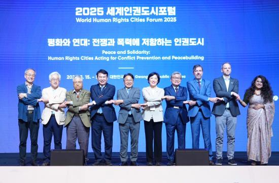 ¡®2025 ¼¼°èÀαǵµ½ÃÆ÷·³¡¯ÀÌ 15ÀÏ ±è´ëÁßÄÁº¥¼Ç¼¾ÅÍ¿¡¼ °³¸·Çß´Ù. ÀÌ Æ÷·³Àº ±¤ÁÖ±¤¿ª½Ã, À¯¿£ ÀαÇÃÖ°í´ëÇ¥»ç¹«¼Ò(OHCHR), À¯³×½ºÄÚ(UNESCO), ±¤ÁÖ±¤¿ª½Ã±³À°Ã»ÀÌ °øµ¿ ÁÖÃÖÇϸç, ¼¼°è °¢±¹ÀÇ ÀαÇÀü¹®°¡ µî 1500¸íÀÌ Âü¼®ÇÑ´Ù.