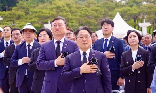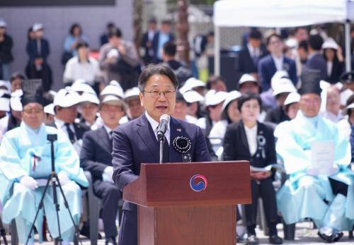 ° ½ÃÀåÀº À̳¯ ±¹¸³5¡¤18¹ÎÁÖ¹¦Áö¿¡¼ ¿¸° ¡®Á¦45ÁÖ³â 5¡¤18¹ÎÁÖȿ Ã߸ð½Ä¡¯¿¡¼ Ã߸ð»ç¸¦ ÅëÇØ ¡°5¡¤18¹ÎÁÖȿÀº ´ëÇѹα¹ÀÇ ¿À·¡µÈ ¹Ì·¡ÀÌÀÚ, ´ëÇѹα¹ÀÌ ³ª¾Æ°¥ ¹æÇâÀ» Á¦½ÃÇß´Ù.