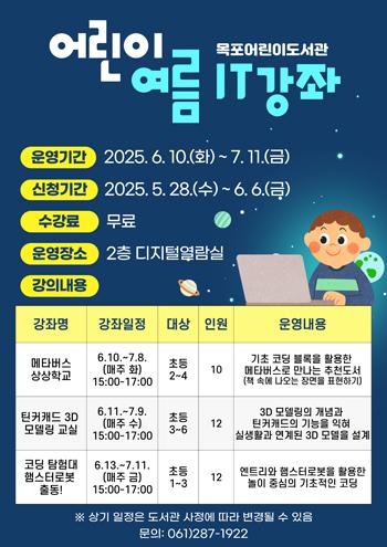 2025³â ¿©¸§ IT°Á ÇÁ·Î±×·¥Àº ¡ã¸ÞŸ¹ö½º »ó»óÇб³(Ãʵî2~4Çгâ) ¡ãƾĿijµå 3D ¸ðµ¨¸µ ±³½Ç(Ãʵî3~6Çгâ) ¡ãÄÚµù ŽÇè´ë ÇܽºÅͷκ¿ Ã⵿!(Ãʵî 1~3Çгâ) µî ÃÑ 3°³ °Á·Π7¿ù 11ÀϱîÁö ¹«·á·Î ¿î¿µÇÑ´Ù.