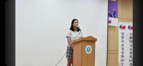 ¹ÚÁÖÀº ÇлýÀº º»¼± ¹«´ë¿¡¼ ¡®¿îÀº ±æ¿¡ ¶³¾îÁ® ÀÖ´Ù¡¯¶ó´Â ÁÖÁ¦·Î ¹ßÇ¥¸¦ ÁøÇàÇߴµ¥, JLPT 1±Þ, JPT 850Á¡ÀÇ Äè°Å¸¦ ÀÌ·ï³½ ÀÚ½ÅÀÇ ÇнÀ°æÇèÀ» ºñÃß¾î ºÃÀ» ¶§ ¡®°á±¹ ¿îÀ̶õ Çϴÿ¡¼ ¶³¾îÁö´Â °ÍÀÌ ¾Æ´Ï¶ó ÀÚ½ÅÀÇ ÁÖº¯¿¡ ¶³¾îÁø ±âȸ¸¦ ÁÖ¿ö¼ ½Ç·ÂÀ» ½×¾Æ¾ß ÇÑ´Ù¡¯´Â ÀÇÁö¸¦ ÁøÁ¤¼º ÀÖ°Ô ¹ßÇ¥ÇØ ½É»çÀ§¿øµéÀÇ ³ôÀº Æò°¡¸¦ ¹Þ¾Ò´Ù.