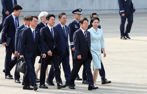 ÀÌ ´ëÅë·ÉÀº À̳¯ ¿ÀÈÄ ¼¿ï°øÇ׿¡¼ ij³ª´Ù·Î Ãâ±¹Çß´Ù. ¼ø¹æ¿¡´Â ±èÇý°æ ¿©»çµµ µ¿ÇàÇß´Ù. °øÇ׿¡¼´Â °ÈÆ½Ä ´ëÅë·É ºñ¼½ÇÀå°ú ¿ì»óÈ£ Á¤¹«¼ö¼®, ±èº´±â ´õºÒ¾î¹ÎÁÖ´ç ´ëÇ¥ Á÷¹«´ëÇà °â ¿ø³»´ëÇ¥ µîÀÌ ÀÌ ´ëÅë·É ºÎºÎ¸¦ ȯ¼ÛÇß´Ù.