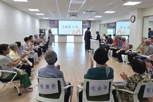 ¼ö·á½ÄÀº Âü¿©ÀÚ¿Í °¡Á·µéÀÌ Âü¿©ÇØ ±×°£ÀÇ È°µ¿ ¸ð½ÀÀ» ´ãÀº »çÁø ¹× ¿µ»ó ½ÃûÀ» ½ÃÀÛÀ¸·Î À½¾Ç °ø¿¬, ¼ö·áÁõ¡¤²É´Ù¹ß Àü´Þ µîÀÌ ÁøÇàµÆ´Ù.