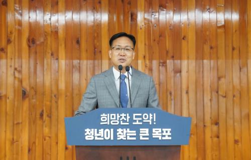 Á¶ ºÎ½ÃÀåÀº ÃëÀÓ½ÄÀ» ÅëÇØ ¡°ÀüÅë°ú ¿ª»ç°¡ ±êµç Àü³² Á¦1ÀÇ µµ½Ã, ¸ñÆ÷ÀÇ »õ·Î¿î µµ¾àÀ» À§ÇØ ¸ðµç ¿Á¤À» ºÒÅ¿ì°Ú´Ù¡±°í Æ÷ºÎ¸¦ ¹àÈ÷¸ç, ¸ñÆ÷½Ãû Á÷¿øµé¿¡°Ô ù°, Á÷¿øµé°úÀÇ ¼ÒÅë°ú ÈÇÕÀ» ÅëÇØ »ç±âÁøÀÛ¿¡ Èû¾²°í, µÑ°, ¸ÃÀº ¹Ù Ã¥ÀÓÀ» ´ÙÇÏ´Â ½Å·Ú¹Þ´Â ¸ñÆ÷½Ã °ø¹«¿øÀÌ µÇ±â À§ÇØ ¿ª·®À» °ÈÇϸç, ¼Â°, ½Ã¹Î°ú ¹Ì·¡¼¼´ë¿¡°Ô Èñ¸Á°ú ºñÀüÀ» ÁÙ ¼ö ÀÖ´Â ´õ Å« ±×¸²À» ÇÔ²² ±×·Á ³ª°¡ÀÚ°í ´çºÎÇß´Ù.
