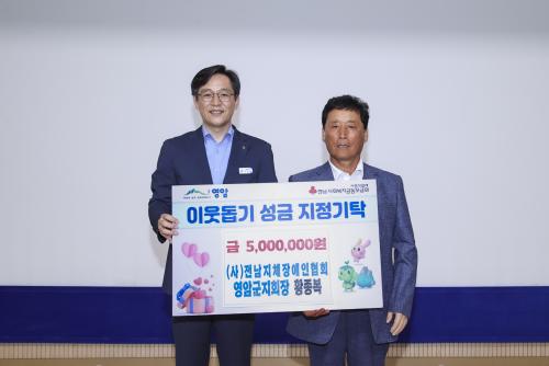 Áö³ÇØ¿¡µµ 300¸¸¿øÀ» ¿µ¾Ï±º¹Ì·¡±³À°Àç´Ü¿¡ ±âŹÇÑ È² ÁöȸÀåÀº, À̹ø ÀåÇÐ±Ý Àü´Þ·Î Áö¿ªÀÎÀç ¼ºÀåÀ» À§ÇÑ ³ª´®À» À̾´Ù.