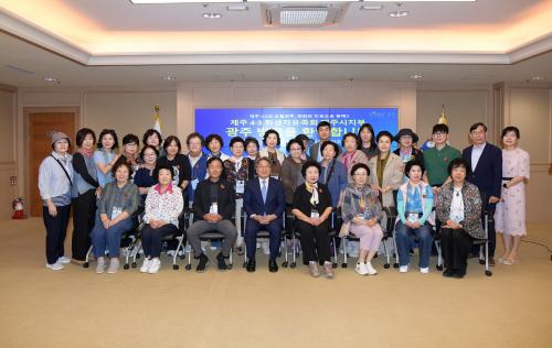 °±âÁ¤ ±¤ÁÖ½ÃÀå, Á¦ÁÖ4¡¤3Èñ»ýÀÚÀ¯Á·È¸¿Í ȯ´ã