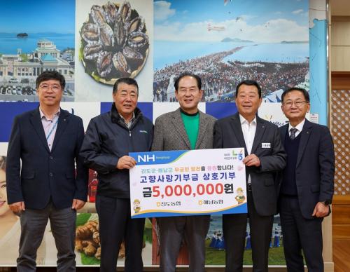Áøµµ³óÇùÀº Áö³ ÇØ³²¹Ì³²ÃàÁ¦¿¡¼ ÇØ³²±º¿¡ °íÇâ»ç¶û±âºÎ±Ý 500¸¸ ¿øÀ» ±âºÎÇßÀ¸¸ç, À̹ø¿¡´Â ÇØ³²³óÇùÀÌ Áøµµ±º¿¡ °íÇâ»ç¶û±âºÎ±Ý 500¸¸ ¿øÀ» Àü´ÞÇÏ¸ç ¼·Î¸¦ ÀÀ¿øÇÏ´Â µû¶æÇÑ ¸¶À½°ú Áö¿ª »ó»ýÀÇ Àǹ̸¦ ³ª´³´Ù.