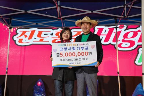 º¯È¼ø ´ëÇ¥´Â ¡°¾Æ¸§´Ù¿î ÀÚ¿¬È¯°æ°ú ¸Å·ÂÀûÀÎ Áö¿ª¹®È¸¦ °¡Áø Áøµµ¿¡ Ç×»ó °ü½ÉÀ» µÎ°í ÀÖ¾ú´Ù¡±¶ó¸ç, ¡°Áö¿ª ÁֹεéÀÇ º¹Áö Çâ»ó¿¡ ÀÛÀº º¸ÅÆÀÌ µÇ°í ½ÍÀº ¸¶À½À¸·Î ¸Å³â ±âºÎ¸¦ À̾î¿À°í ÀÖÀ¸¸ç, ¾ÕÀ¸·Îµµ Áøµµ ¹ßÀüÀ» À§ÇØ ÇÔ²²ÇÏ°í ½Í´Ù¡±¶ó°í ¸»Çß´Ù.