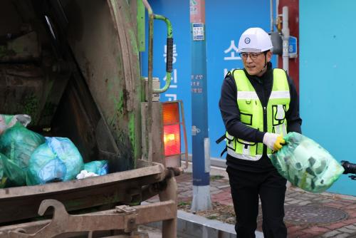 ƯÈ÷, ÇöÀå ±Ù¹«ÀÚµé°ú »ýȰ ¾²·¹±â ¼ö°Å Â÷·®¿¡ ž½ÂÇØ ÁÖ°Å ¹ÐÁýÁö¿ª°ú »ó°¡ Áö¿ªÀ» ¼ö°Å ÀÛ¾÷À» ÇÔ²² ÇÏ¸ç ¹«´ÜÅõ±â ½ÇÅÂ, ºÐ¸®¹èÃâ ¹ÌÀÌÇà »ç·Ê, ÇöÀå ¾ÈÀü ¹× ±Ù¹« ¿©°Ç È®ÀÎ µîÀ» ³õ°í À̾߱⸦ ³ª´³´Ù.