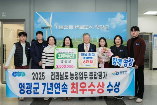 ¿µ±¤±º, Àü¶ó³²µµ ³óÁ¤¾÷¹« Á¾ÇÕÆò°¡ 7³â ¿¬¼Ó ¡°ÃÖ¿ì¼ö»ó¡± ¼ö»ó