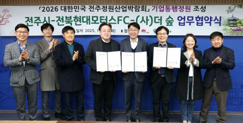 ÀüÁÖ½Ã¿Í ÀüºÏÇö´ë¸ðÅͽºFC(´ÜÀå À̵µÇö), »ç´Ü¹ýÀÎ ´õ½£(´ëÇ¥ Á¤¸í¿î)Àº 23ÀÏ ½Ãû 3Ãþ ¼ÒȸÀǽǿ¡¼ ¡®2026 ´ëÇѹα¹ ÀüÁÖÁ¤¿ø»ê¾÷¹Ú¶÷ȸ¡¯ ±â¾÷µ¿ÇàÁ¤¿ø Á¶¼ºÀ» À§ÇÑ ¾÷¹«Çù¾àÀ» ü°áÇß´Ù.
